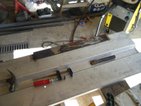DSCF0671.jpg (151.22 KB. 733x550 - vist 389 ganger.) Og fekk testa å laga kurva av plata.. funkar fint må berre laga meg ein bedre hammar (krokkett ball + skaft)