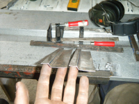 Jøss! Opptatering jo! Ikkje akkuratt mykje å melda om då.. men eg har fortsett dar eg slapp sist Tidlegare laga eg meg ein mal av nokon fjøler og styr men dei vart jo avrunda og ved med ein gong.. so eg tok å sveiste på eit vinkeljern med passlig tjokkelse på ei plata i stedenfor. Mykje meir egna enn fjøler