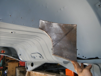 Det ligger an til å gjera da på den vanskelige måten, men likavel den einaste måten som vert bra.......borra ut og slipa  Vart so mykje att og fram tenking ang den slipinga baki der att eg vart håvegalen.. so eg begynte på karosserifestet i høgre innerskjerm istaden. Har no fått gjort klar plato som skal vera i innerskjermen, har fiksa andre delen i innerskjermen. og er då klar til å sveisa dei isaman. So må sjølva forsterkingsplato fiksast.. bilde kjem seinare går eg ut ifrå