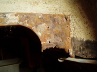 Her er eit bilde av rusta hittil i den filt-pylse-kanalen under bakruta.. Heile kanalen er halvfull med rustflak så stålet er nok eindel redusert nedi der..