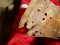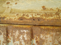 P1016595.jpg (132.39 KB. 733x550 - vist 411 ganger.) Etter ein vask med roterande stålbørste ser me att plata er spist opp/oppeten i store mengdar i metallet! Her må det nytt stål inn!