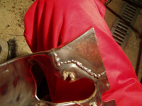 P1016667.jpg (132.55 KB. 733x550 - vist 287 ganger.) Då eg løyste dei to nederste punkta med meisel etter å ha bort så skvatt innerplata til og flytta seg litt.. Var vist eindel spenningar i denne plata, hard å kneppa tilbake og! Men det skal gå bra:)