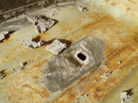 P1016575.jpg (111.39 KB. 733x550 - vist 305 ganger.) Og vips! Plata er av, og elendigheiten kjem fram i dagslyset..