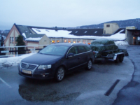 Reiste som sagt avgårde i 11tida og heim og henta hengaren, dermed var me påveg klokko 12, men berre etter ein 20minuttar vart det stopp, då havna me rett i eit snøras, nesten.. dvs me var 2-3bilen som kom der, so hadde me vert nett noko minuttar raskare kunne me ha risikert å fyllt hengaren med snø.. Men me vart ståande å venta der i ein god time  Dukka etterkvart opp ein traktor so fekk måka veg, sjølv om det hadde vert snøfritt før den tid om nokon hadde skaffa spadar til trailersjoførane som berre stod med henda ilommo.. Noja nok om da,, på askøy fekk me lessa på bilen og tatt ein lang prat med eigaren der nede, hadde masse historiar på lager om alle boblene han har hatt, samt diverse sandblåseteknikkar og tips, og ikkje minst att han meinte det var for gale att eg måtte kjøyra heilt til bergen for å få sandblåst ein bil.. han meinte eg måtte alliera meg med nokon her oppe og spleisa på utstyr. dessutan sa han att brukt profft utstyr var billigare enn nytt privat/amatør utstyr.. hadde vert morro å hatt lokal tilgang på detta, utan å verta flådd for sparepengane til nokon tullingar som skal ha 1200kr timen.. Men eg er strålande fornøygd!! Dette er ein ny milepel, for bilen er jo faktisk RUSTFRI  Berre med eindel hol.. ja det er eindel, men ikkje so gale heller! Gløymte å ta bilder frå askøy, men her er eit "stemningsbilde?" frå då me var innom Krankenhaus på Hop i bergen..