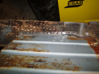 P1017472.jpg (131.69 KB. 733x550 - vist 455 ganger.) Men det gjekk ikkje.. Eg må sveisa att hola fordi eg ikkje kan sveisa frå denna sida,, men det viste seg att å få sveist att eit sånt hol var vanskeleg.. tynnrusta stål