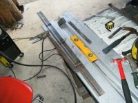 Tidlegare laga eg meg ein mal av nokon fjøler og styr men dei vart jo avrunda og ved med ein gong.. so eg tok å sveiste på eit vinkeljern med passlig tjokkelse på ei plata i stedenfor. Mykje meir egna enn fjøler