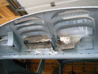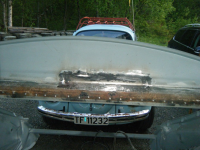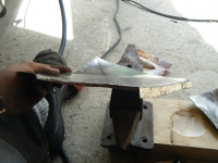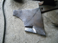 Har no fått gjort klar plato som skal vera i innerskjermen, har fiksa andre delen i innerskjermen. og er då klar til å sveisa dei isaman. So må sjølva forsterkingsplato fiksast..
