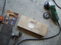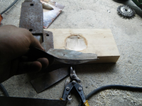 Og fekk testa å laga kurva av plata.. funkar fint må berre laga meg ein bedre hammar (krokkett ball + skaft)