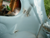 Ponkta på plass, etter å ha behandla baksida med sveisegrunning og lakka da umulig-å-komma-til-holet-i.innerskjermen.