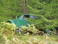 Nokon BØR ta ansvar å få redda den dobbelkabinen ut frå skogen! Bilen er jo strøken for å vera skogs"vrak! Skulle gjerne hatt den der ja