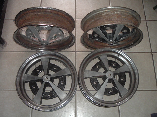 Fått gjort litt i dag. Demontert 2 av felgene, og finner stadig sprekker i aluminumen. De satt godt fast men måtte gje seg te slutt. Blir en lette jobb å polere de nå. Genialt med skrudde hjul..