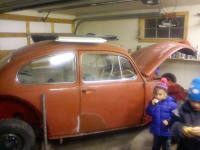 Å hos en kunde på langhus står det en bortgjemt rød boble med full bredding å noen breie bakhjul, avskiltet for flere år siden...