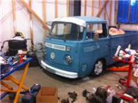 vi skal lage en T2 rekke dden 19. egen T2 plass.  holder på i garasjen jeg og nå, har litt spindel problemer så det er under vurdering om jeg skal sette på orginal spindler foreløpig, men skal prøve ut en siste ting før det skjer Blunker det er bra det finnes proffe sveisere på jobben  Glad