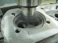 Planingen av bokka er som kjent ferdig. Nå begynner flycutting-prosessen. For å kunne øke sylinderborring på T1-blokka over 1680 (slip-in-typen) må en maskinere opp både blokk og topper for å få plass til de større sylinderforingene. Til dette formålet bruker jeg en flycutter med ett skjær. Typen m. ett skjær vil lage et rundt hull, mens med flere skjær er det risiko for at hullet blir kantet (typisk ved borring).