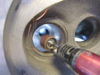 Jeg gjorde én liten forskjell mellom bearbeidingen av innsugsportene og eksosportene: Innsugsportene ble kun slipt. Eksosportene ble i tillegg til slipinga også polért med et såkalt "flap wheel" for å få en enda glattere overflatefinish.