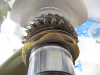 Det første jeg gjør er å legge kamlagerne i den blokkhalvdelen som er spent opp i bukken. Deretter legger jeg nedi en løfter og slenger kammen oppi. Det jeg vil se etter nå er om det er grei klaring mellom løfteren og loben. Utifra det ganske crappy bildet kan en lett se at klaringen er på et par millimeter, og dette er mer enn nok for at en ikke skal få smellt av tuppen på loben fordi løfteren ikke går lenger inn i tønna si'. Ville vært synd, eller hva?