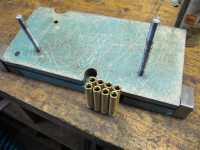 Toppene blei vasket i sterk avfettig og stemaet skikkelig reine dagen før. Toppene inn i ovnen på 200 grader i rundt 20 min for litt utvidelse av godset. Så brukte vi et tilpasset neddreid stål med ca. 8 mm stamme for å banke inn styringene.