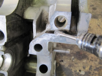Siden jeg kommer til å ha en del høyere oljetrykk enn en std.-motor, vil jeg modifisere returkanalene fra kammen og bakre rammelager litt. Økt oljetrykk vil mate mer olje igjennom oljegalleriene over samme tid. Mao. bør returpotensialet forberes litt for å være på den sikre siden. Denne moden har jeg gjort på flere motorer, og det fungerer bra!