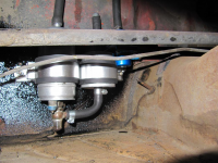 Har et delbart filter med en grei screen inni mellom tank og pumpe som tar opp det værste. Denne kan jeg inspisere og rense så ofte jeg vil. Den har også veldig stort areal (er formet som en tallerken), så den vil ikke være særlig restriktiv (fuel starvation, yeah?) Er livredd for å ha noe som ødelegger det naturlige fallet. Hadde jeg hatt feeder-pumpe i tanken kunne jeg sovet roligere om natten.