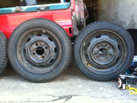 Før det blev der hentet friske dekk  Gliser 185/60 og 145/65 er fint det