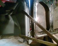 Dette siste bildet viser en rustskadedel sveiset sammen med en donordel fra et 1958 karosseri som vi har plukket mye deler i fra.