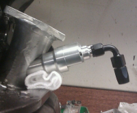 Jeg har ikke søylebormaskin, så jeg tar med meg den biten på jobben og får borret opp 4 hull som jeg setter inn NPT-an6 fittings i.