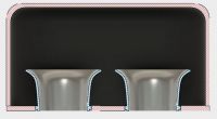Har grublet litt mer på disse air-boxene, og junior som er en rev på 3D-modellering viste meg en snitt av boksen med traktene tegnet inn:
