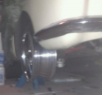 Først har jeg fått lakkert de felgene jeg skal ha på bak. Dette er deep6, og de bredder mer utover enn de 5.5" jeg har på. Men etter litt kontrollmåling, viser det seg at jeg har nesten 2cm mindre klaring enn med 5.5-tommerne, så jeg er usikker på om dette sklir innunder...: