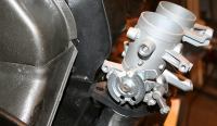 Problemet er at det sitter festeører til TPS-sensor og mothaker for returfjærene støpt inn i spjellhusene, og de er ikke like på begge sider, så jeg kan ikke bare flippe akslingen til spjellene... En annen løsning ville være å flippe hele det ene spjellhuset 180°, men da blir justeringsskruene til tomgangen være på innsiden på dene ne , og på utsiden på den andre... Passer ikke mitt symmetriske hode Blunker
