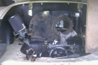 Så jobbet jeg et par timer på motoren, og fikk montert en del. Sliter litt med å justere inn termostaten, slik at den åpner og lukker spjellene når den skal, men litt mer fikling, så blir det nok bra.