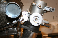 Neste jeg gjorde var å borre opp bolthullene til disse gummi-flensene, og montere hele ruklet på motoren før jeg kappet og tilpasset gasswirene: