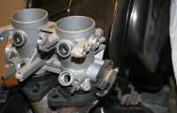 Problemet er at det sitter festeører til TPS-sensor og mothaker for returfjærene støpt inn i spjellhusene, og de er ikke like på begge sider, så jeg kan ikke bare flippe akslingen til spjellene... En annen løsning ville være å flippe hele det ene spjellhuset 180°, men da blir justeringsskruene til tomgangen være på innsiden på dene ne , og på utsiden på den andre... Passer ikke mitt symmetriske hode Blunker