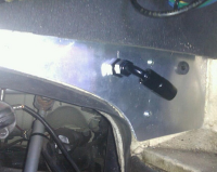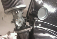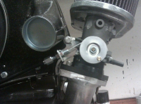 Fant igjen gjengetappen og fikk prøvemontert braketten på venstre side, men her må jeg i tenkeboksen igjen... En ting er at det ikke ser spesielt bra ut men jeg må prøve å få festet den i to punkter på spjellhuset for å sikre at ikke noe flytter på seg...