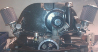 Så jobbet jeg et par timer på motoren, og fikk montert en del. Sliter litt med å justere inn termostaten, slik at den åpner og lukker spjellene når den skal, men litt mer fikling, så blir det nok bra.