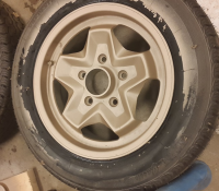 Begynte med et "før" bilde av cookie-cuttersa med 175-dekk, mest for å måle klaring til felgen: