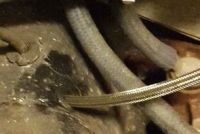 Først borret jeg et hull i tunellen så jeg fikk tredd slangen inn til området rundt pedalstellet, så tredde jeg slangen inni røret til clutchwiren fra pedalstellet og bak til girkassa: