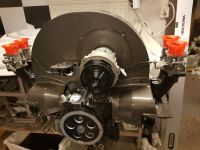 Fikk prøvemontert toppene, og etter at de ble maskinert 2 tideler passet sylindrene og nå ser det i alle fall ut som en longblock selv om innmaten ikke er montert ennå: