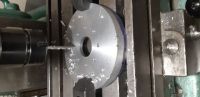 For de interesserte kan jeg nevne at de 5 hulla i reimhjulet på forrige bilde, ble laget i fresen vha PCD-funksjonen på DROen. Veldig enkelt og greit å få til for en amatør Glad