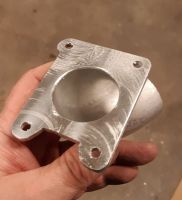 Fikk gjort en del andre ting også som ikke gjør seg så godt på bilde, men jeg har begynt å lage innsugsdelene som skal mellom kompressoren og spjellhuset, så jeg må snart ta et valg på hvilket spjellhus jeg skal bruke. Jeg har ett fra en nyere 2-liter VW passat eller noe, men den har servomotor for tomgangsstyring, og det vet jeg ikke om jeg skal begynne å fikle med. ECUen kan ikke uten videre styre dette så da blir det litt mye ekstra arbeid for lite gevinst å begynne å knote med det. Jeg har også et spjellhus fra den opprinnelige wbx-motoren som donerte blokka til oxyen. Det er på ca 50mm diameter mens det fra passat er ca 58. wbx'ene leverte 112 hk originalt, så jeg er ganske sikker på at den diameteren ikke kommer til å representere en begrensning for effekten jeg ser for meg i denne motoren.