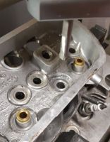 valve.jpg (33.86 KB. 291x600 - vist 469 ganger.) Jeg er ikke noen ekspert på dette, men det ser for meg ut som det er en en del koksavleiringer; speielt på innsugsventilen. Vi gjorde noen forsøk på å måle ventilstammen og ut fra det lille vi testet så kom vi til 7.96mm og specen sier 7.9 til 7.94, så de er ikke for tynne i alle fall. Jeg har nye (litt brukte) ventiler liggende og en ny styring på vei i posten som er 15mm utvendig, så planen er å renske opp hullet i toppen etter beste evne, og dreie ned styringa til presspasning og montere dette sammen igjen. Så da har jeg forhåpentligvis en frisk 2110 oxyboxer og en 1600 kompressormotor klar til våren