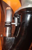 Sett litt skrått fra undersiden ser man både braketten på fuel railen, og den dreide avstands-biten: