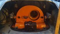 Jeg pleier å montere motoren uten alle kjøleblikk og sånt montert. Mulig det er litt klønete, men det er nå sånn jeg pleier å gjøre det. Bl.a trenger jeg ikke å løfte baken på bilen så høyt for å få viftehuset under bakplata. Og siden jeg stort sett er alene når jeg tar disse motorene ut og inn, så er det greit å slippe å knote med å ta den av og på jekken for å bygge opp med klosser etc. Jeg har nemlig ikke jekk som løfter så veldig høyt.
