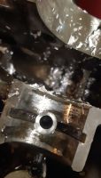 Husk på at den ene oljegalleri pluggen også funker som struping for lager nærmest reimhjul, her kan det fort bli grisete om man setter inn en vanlig plugg. Men du dreier vel en ny i alu? Glad