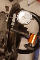 Jeg satte opp et måleur på svinghjulet, og målte endeslakken uten shims: