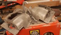 I kveld ble det en runde med sandblåsing for å forberede litt pulverlakk: