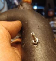 Jeg kuttet selvfølgelig bort den biten som hadde sveiset inn en "bung" til temp-føleren, så den måtte jeg sette inn på ny, og da var det dette med å måle to ganger og kutte en da.... Enden på visa var at jeg ikke har plass til å sette på konnektoren: