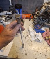 Så dro jeg i gang med å rengjøre toppene, og etter å ha holdt på en stund, konkluderte jeg med at de er rene nok, så da begynte jeg på den ene siden. Jeg monterte ikke støtstangrøra enda siden de er fjæbelastet og kan monteres senere, og jeg skal lage meg nye støstenger så da er det enklere når ikke røra er montert: