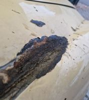 Eneste måten å få det helt rent er å sandblåse, men jeg er ganske sikker på at det er så tynt metall nedi de dypeste gropene, at jeg da vil blåse hull, så jeg må nok forberede meg på å bytte ut en del metall i det området. Problemet er at dette finnes ikke som rustsveisedeler, så jeg må nok prøve å lage delene selv.