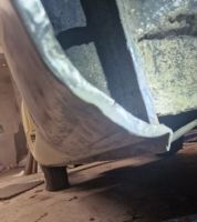 Her er jeg redd jeg må bytte ut hele den nederste delen av døra, så nå må jeg sjekke om det er å få tak i , evt få noen med plateknekker til å lage noen deler til meg. Ingen vits å bruke mer tid på å justere inn gapetc før dette er fikset.