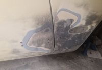Det er jo bare et lite område som jeg kommer til med stålbørste eller negerkuse, og jeg må jo anta at resten av panseret ser like ille ut på baksiden, så jeg får prøve å blåse inn noe stoff tenker jeg ja